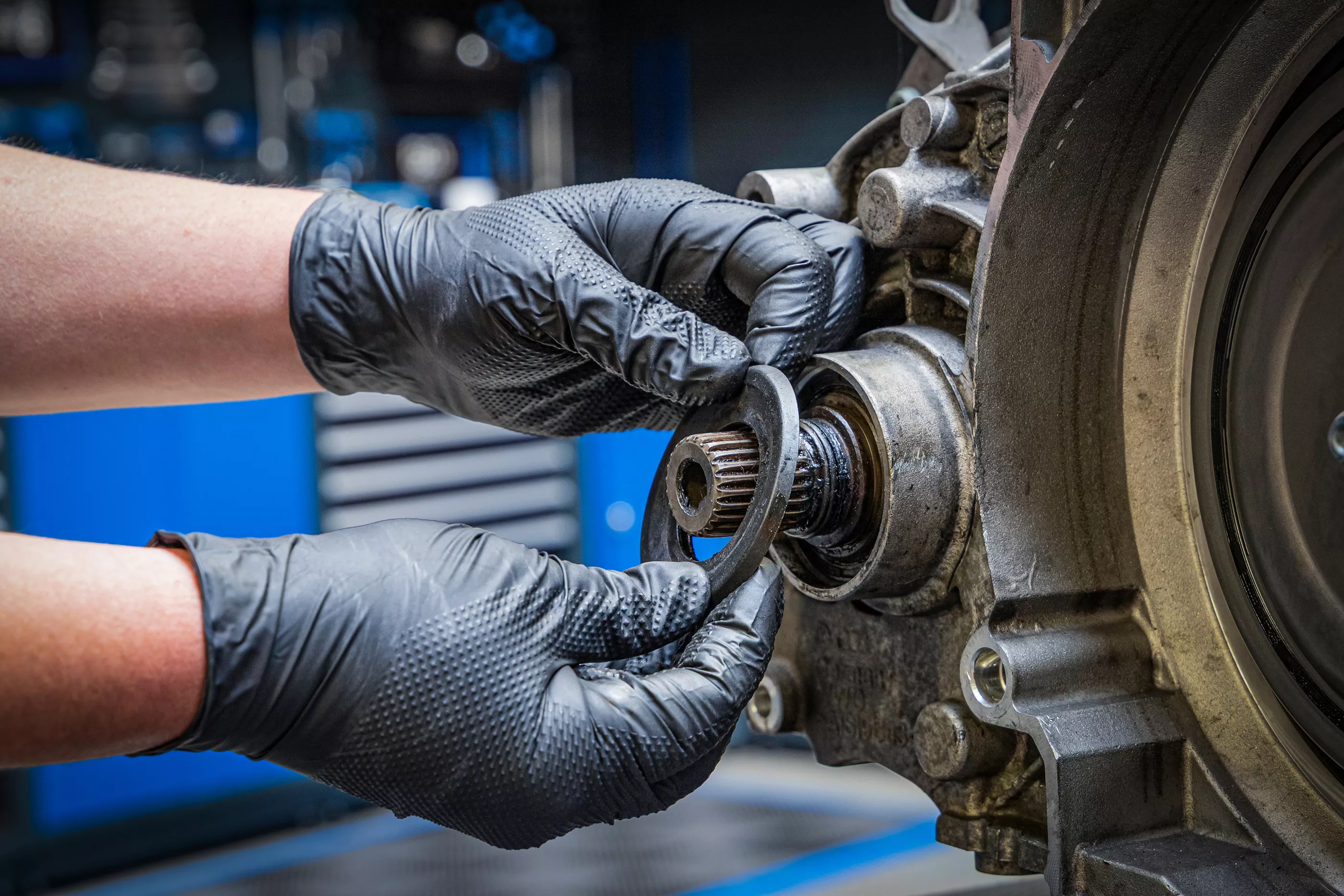 Mănuși de unică folosință din nitril, extra groase și rezistente, ideale pentru utilizare în ateliere, industrie și mecanică.