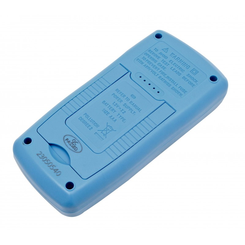 Este echipat cu ecran LCD iluminat, funcție Data Hold pentru blocarea valorilor măsurate și protecție la suprasarcină, asigurând siguranță și ușurință în utilizare. Dispozitivul dispune de funcții suplimentare precum test diodă, test de continuitate cu semnal sonor, testare baterii și test tranzistori.